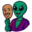 Mit seinem endlos verlängerten Hals, geschmückt von goldenen Ringen, verbeugt sich der African Alien vor den Schönheits- und Identitätsritualen afrikanischer Kulturen. Das fremde Wesen erscheint zugleich majestätisch und kindlich verspielt, ein Symbol dafür, wie Tradition und Zukunft in einer Gestalt verschmelzen. Der Ballon wirkt wie ein Kontrapunkt: unschuldig, fast banal, doch in der Hand des Aliens verwandelt er sich in ein Rätsel. Zwischen Stolz und Verspieltheit, Ritual und Absurdität entsteht ein Bild, das die Frage stellt: Was bedeutet Kultur in einer grenzenlosen, kosmischen Dimension?