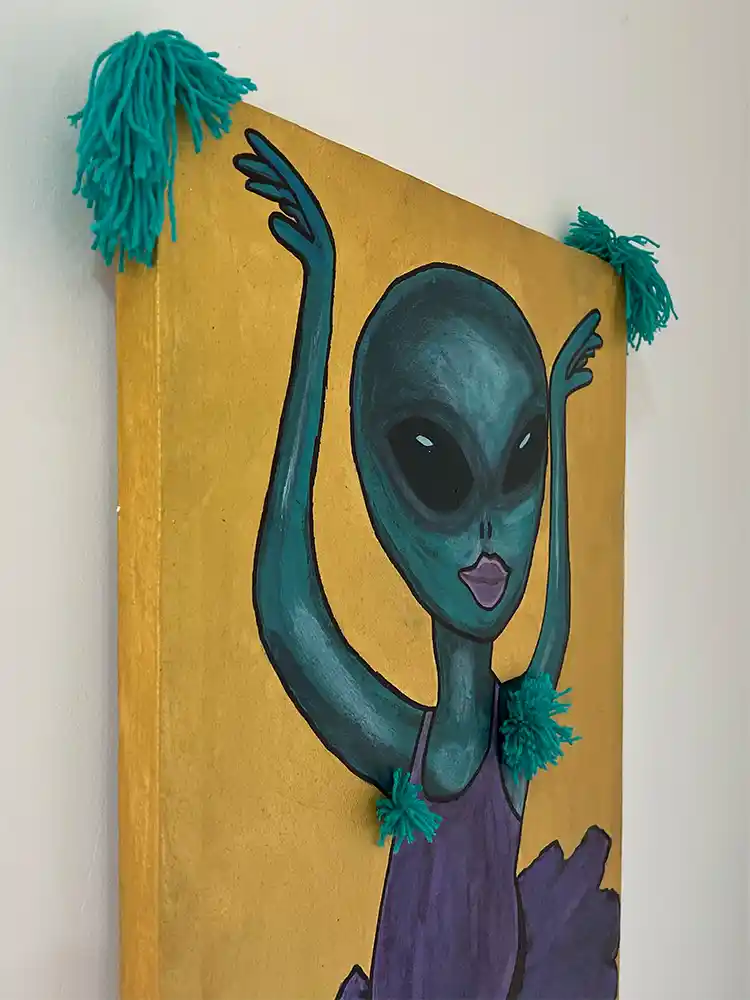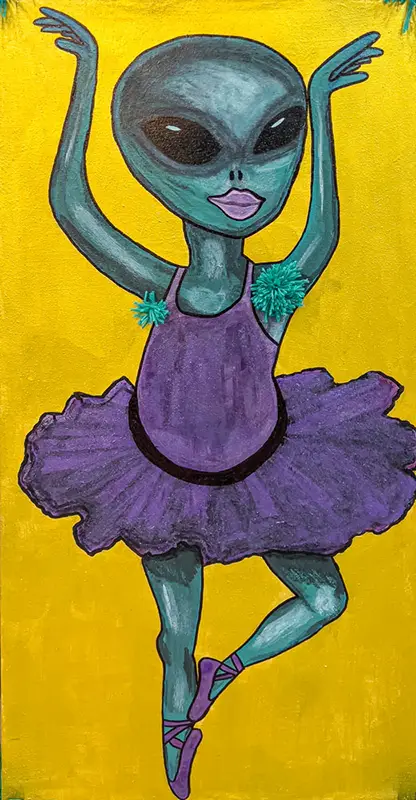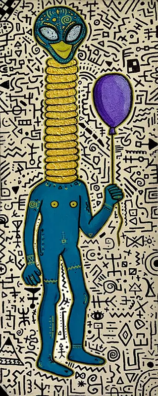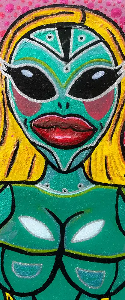 Die Aliens in meinen Bildern sind Spiegel und Wesen zugleich: mal verspielt, mal schräg, mal tief und ernst. Sie tragen die Magie des Unbekannten in sich und laden ein, über die Grenzen des Gewohnten hinauszublicken.
