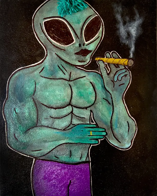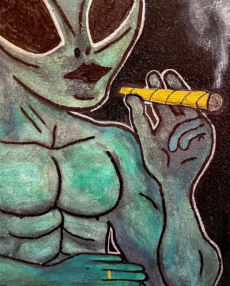 Jede meiner Arbeiten entspringt einem Dialog mit dem Unsichtbaren. Das Alien ist dabei mehr als ein Motiv, es ist eine Essenz. Es verkörpert das Fremde, das Geheimnisvolle, das Unfassbare, und zugleich die Erinnerung daran, dass wir selbst weit mehr sind, als wir zu sehen glauben.