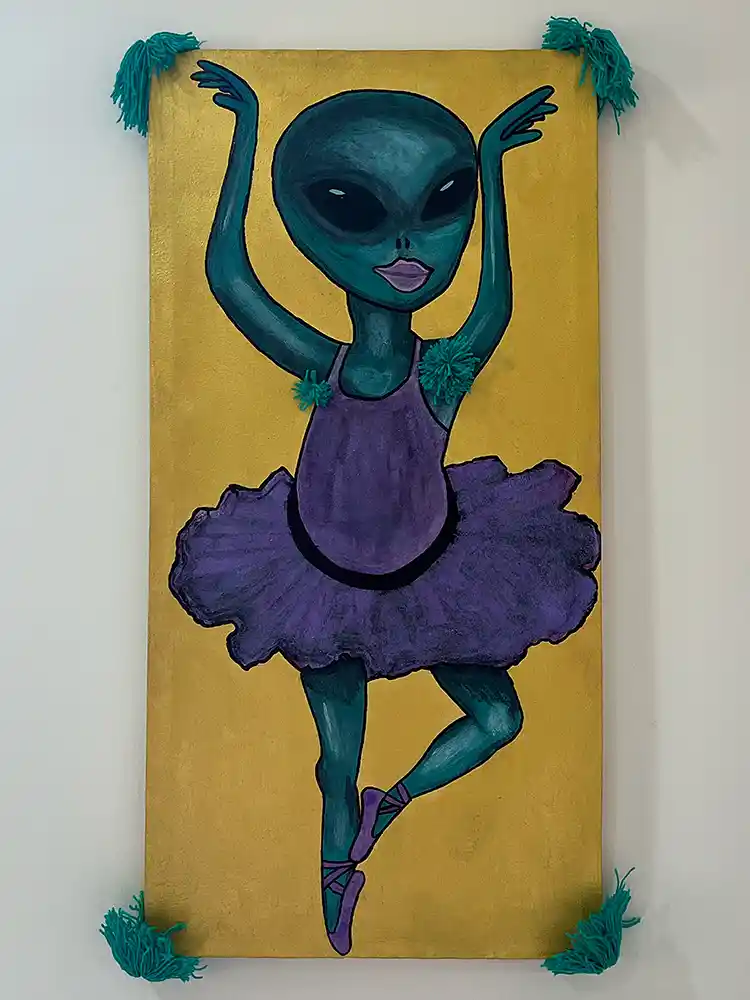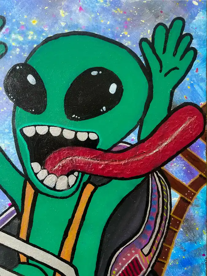 - Meine Bilder sind wie kleine Portale in andere Dimensionen: wild, bunt, manchmal verrückt, immer einzigartig. Hier im Shop findest du meine Original Paintings, jedes ein echtes Unikat, direkt aus meinem Alien-Herz auf die Leinwand gebracht. Wenn du ein Stück dieses Universums in dein Zuhause holen willst, kannst du es hier entdecken und kaufen. Mach dich bereit für Farben, Formen und ein bisschen kosmischen Wahnsinn.